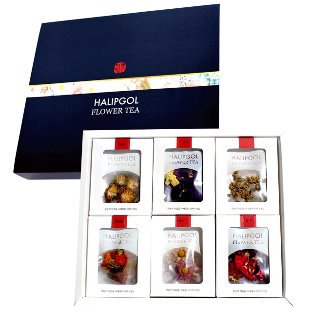 하립골 티백꽃차 6종 선물 세트 구절초 마리골드 장미 민들레 팬지 국화